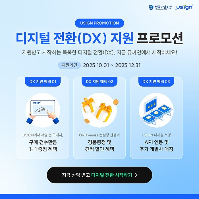 디지털서명이 활성화되기 이전부터 디지털서명을 연구해 온 기업 디지털서명을 바로 아는 기업, 바로 한국기업보안입니다.